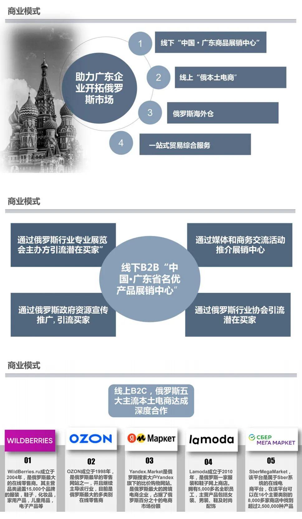 其中也包括建立廣東俄羅斯線上銷售平臺(tái)“俄羅斯粵商城”,為廣東品牌提供在線銷售渠道,幫助廣東企業(yè)產(chǎn)品入 駐俄羅斯本土電商平臺(tái)。